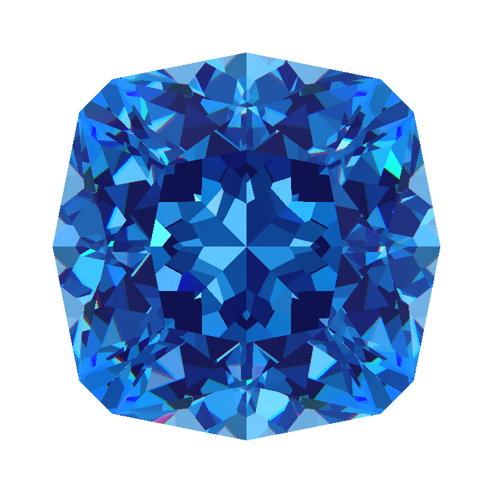 Custom Blue Cobalt YAG Cushion Internal Reflections Gem