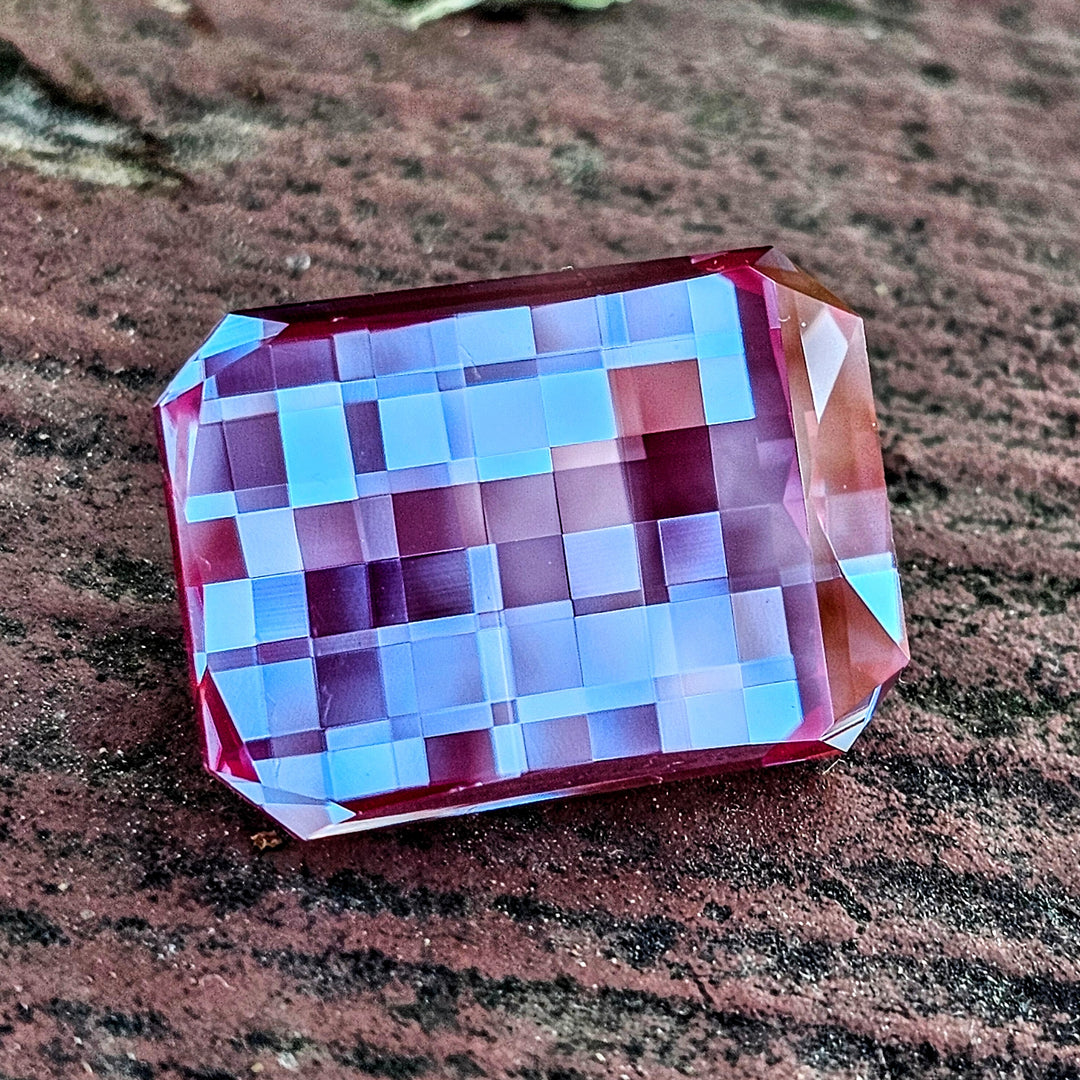 This particular boule top of laser alex was notable because it was bubble free which is very uncommon in laser alex and also a lower concentration of chromium resulting in very bright stones that can be cut in larger sizes.