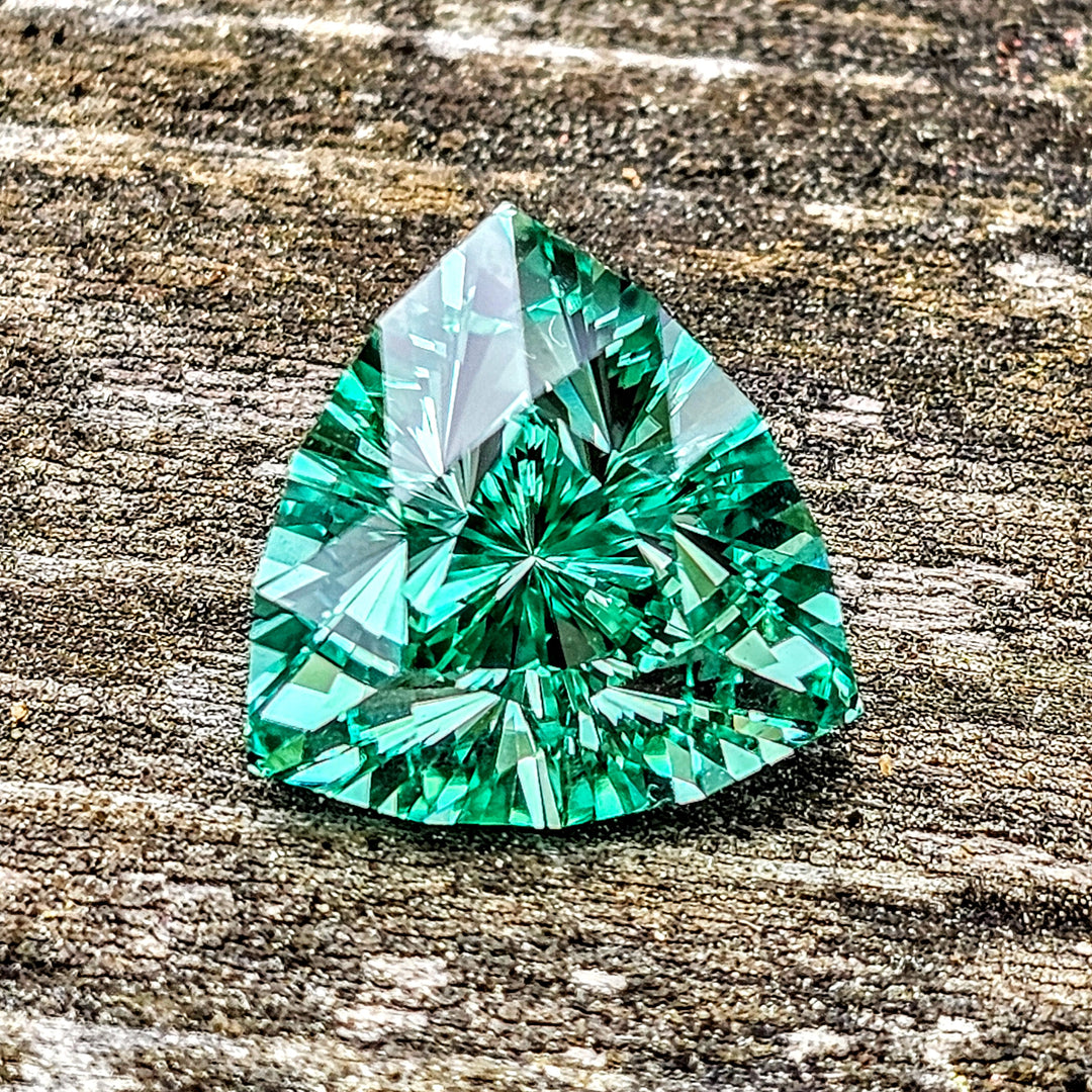 Djeva 73 is characterized by its consistent, minty green hue, a result of cobalt doping in the flame fusion process used to create sapphire. This color closely mirrors that of minty garnet or tourmaline, yet the inherent toughness of sapphire allows for its use in jewelry designed for daily wear. The production of cobalt-doped sapphire presents significant challenges, as cobalt can exhibit two valence states, Co2+ (blue) and Co3+ (green), which can easily fluctuate during the growth process. Achieving stable growth requires the use of specialized gases and growth chambers, making green lab-created sapphire particularly uncommon, and high-quality specimens even more so.