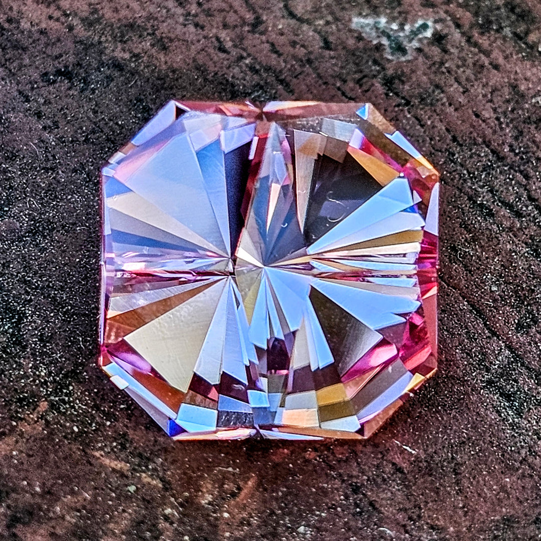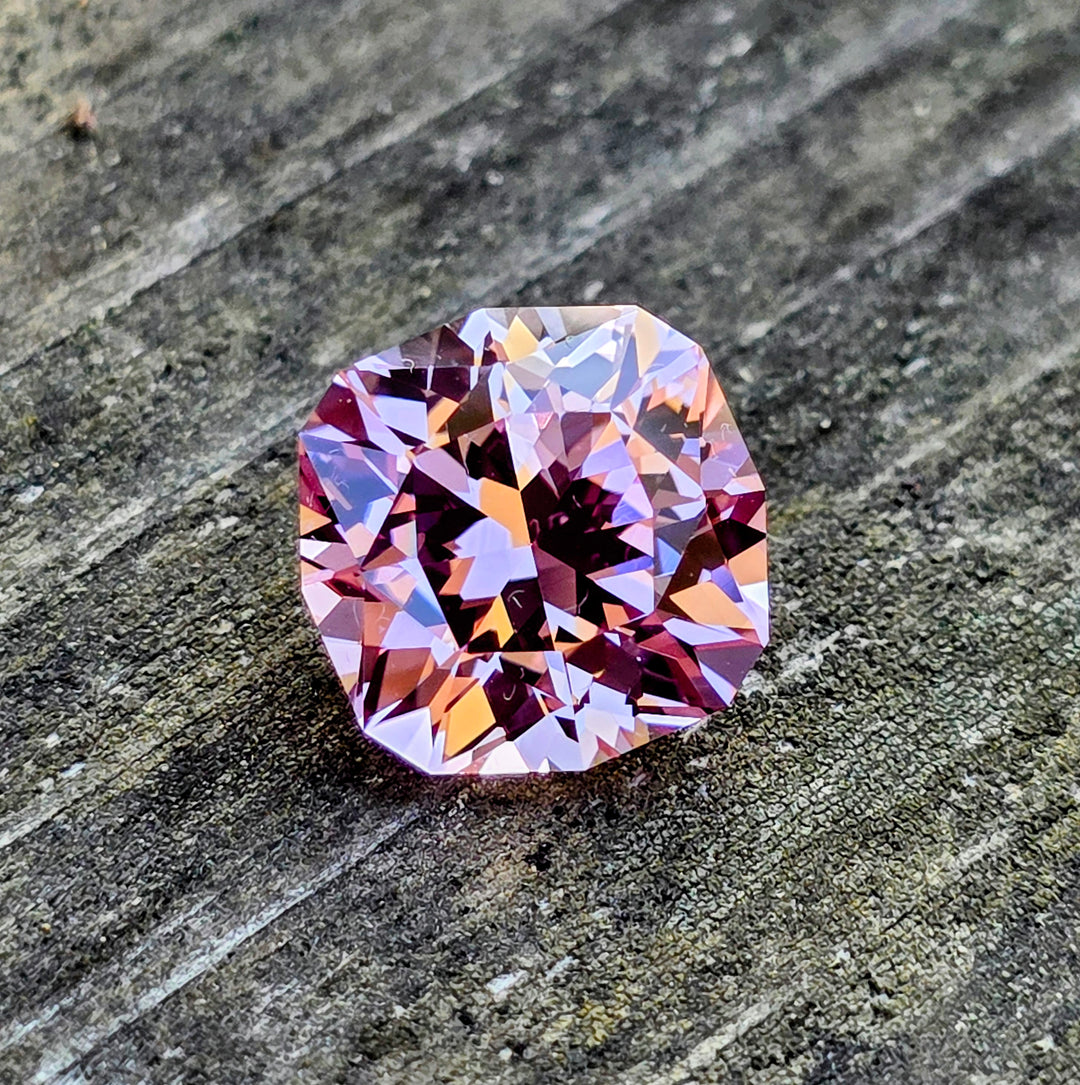 This material presents a more intense orange hue in its rough, uncut form. However, once it has been cut, the gemstone typically shows a reduction in these vibrant orange tones. The change from rough to cut not only alters the appearance but also highlights the directional zoning issues related to the rough's natural structure and the chosen cutting pattern. This shift underscores how the cutting process can influence the color distribution and overall aesthetics of the gemstone.