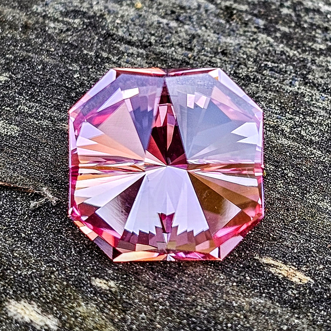 Thai Tech in Thailand offers three varieties of padparadscha-colored sapphire materials. The current sample is the middle option. #16 is characterized by its distinct orange hues, while #18 has a more pronounced pink color. Generally, this material appears pinkish, but under certain light conditions, light peach tones become apparent. These peach tones are likely due to iron dopants, and the pink hues are derived from chromium. Relative to other padparadscha sapphires, this material contains a lower concentration of iron. Additionally, it displays a red fluorescence under UV light.