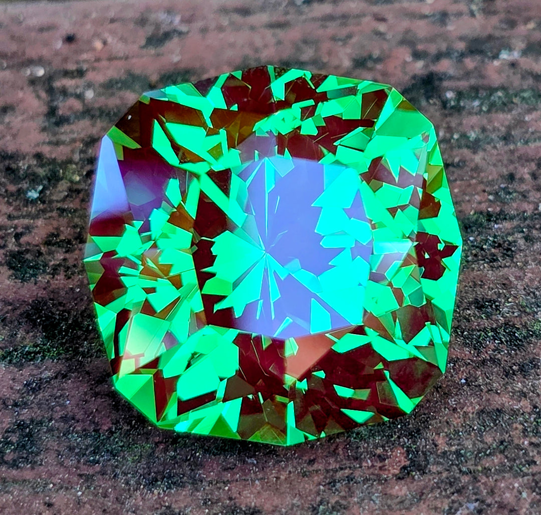 Custom "ULTRA" Glow In the Dark Lab Garnet House Of Sylas Cushion Gem