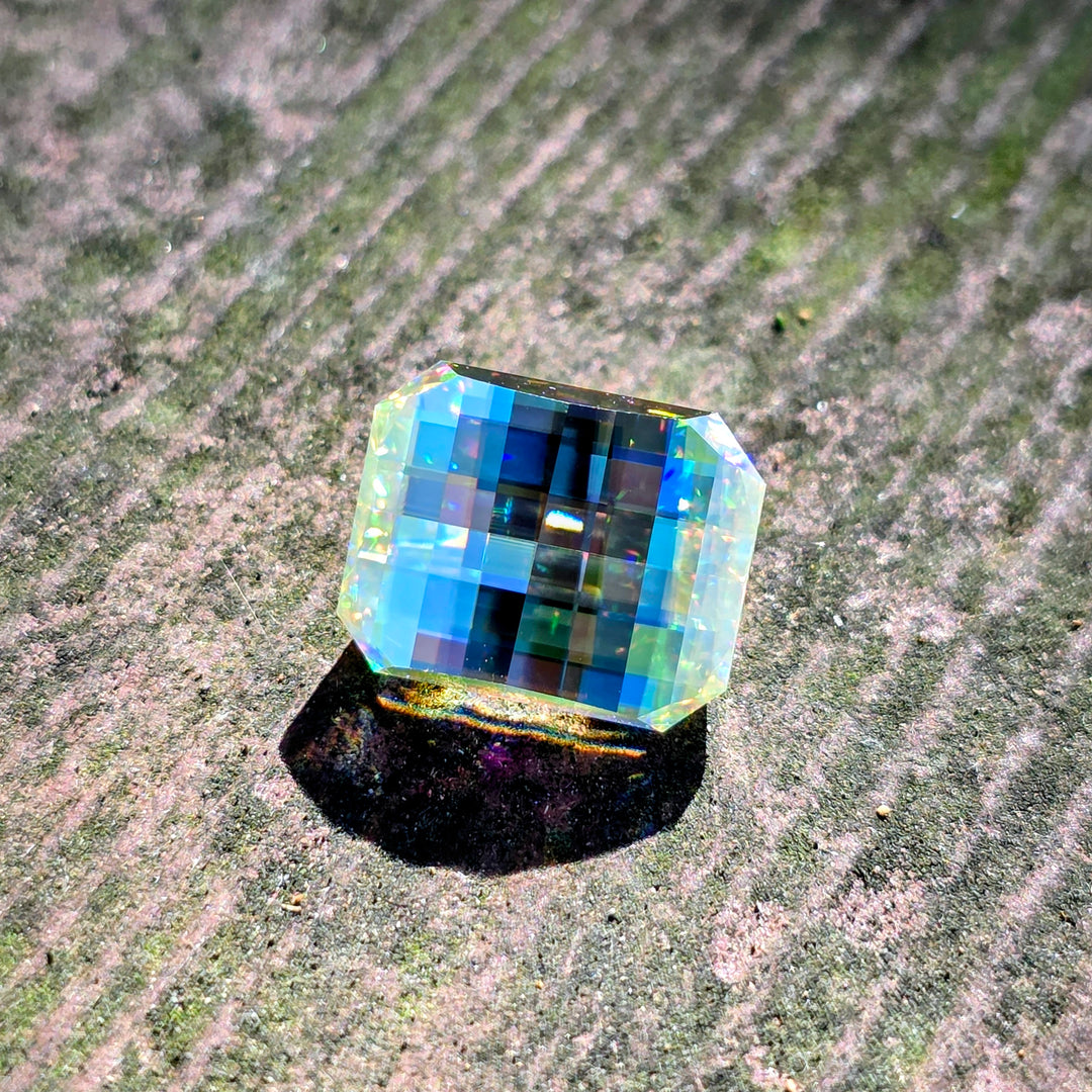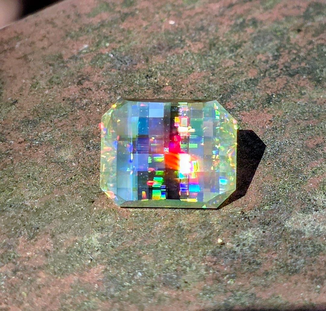 Cut from pristine titanium-dioxide crystal delivers a dispersion of 0.33—six times greater than diamond—so every turn in full spectrum lighting unleashes a cascade of vibrant rainbow flashes.