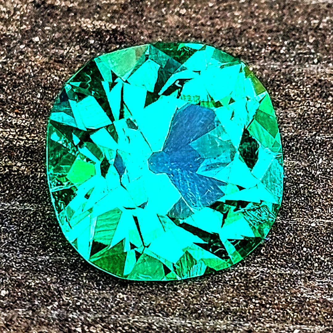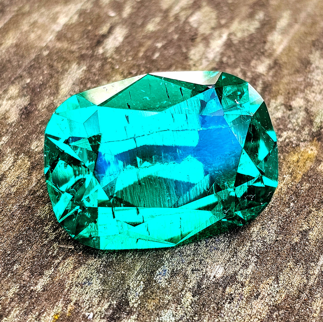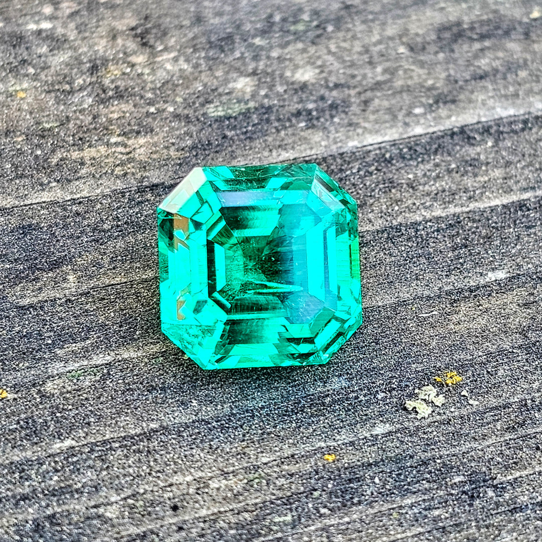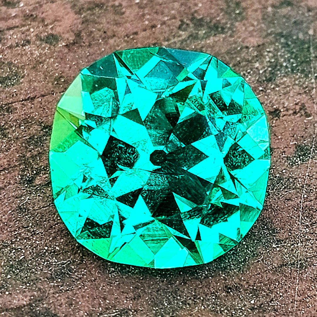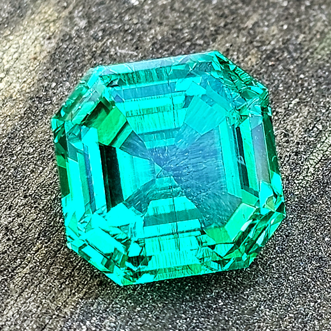 Lab emerald (green beryl) is grown in two colors a darker "Zambian" color and brighter "Colombian" color. Colombian color emerald is an extremely vivid and bright gemstone that contains chromium as a dopant (one of the most vivid colors in all of lab gemstones). Colombian color emerald is one of the most expensive gem materials to produced. In order to keep the chromium in solution, the crystals must be grown in very acidic conditions. The autoclaves must be lined with platinum or gold to prevent the acidic solution from eating through the crucibles during growth.