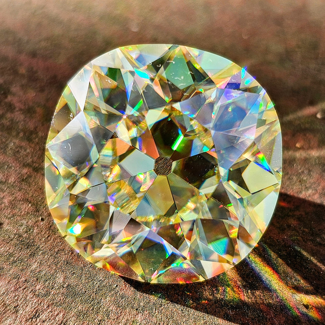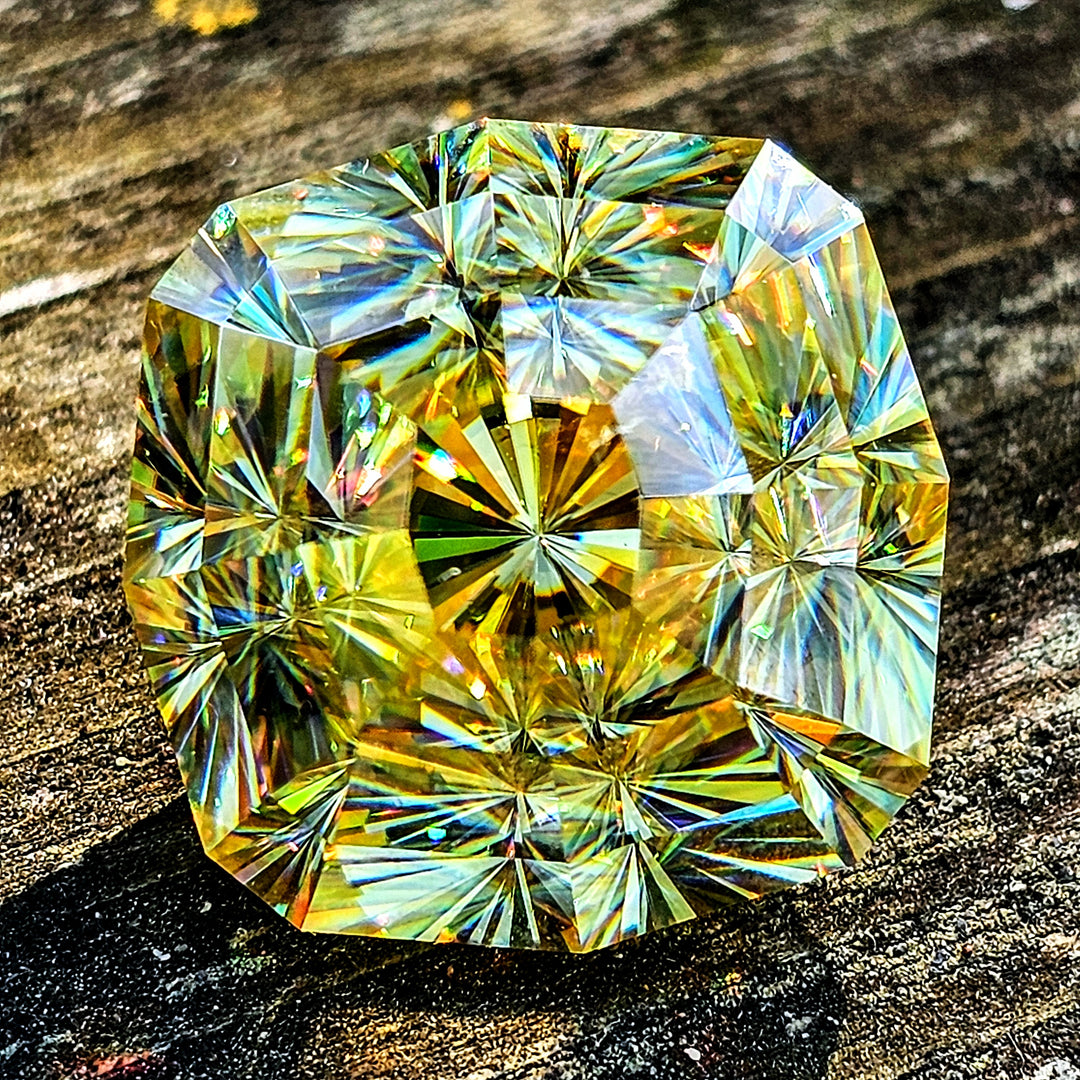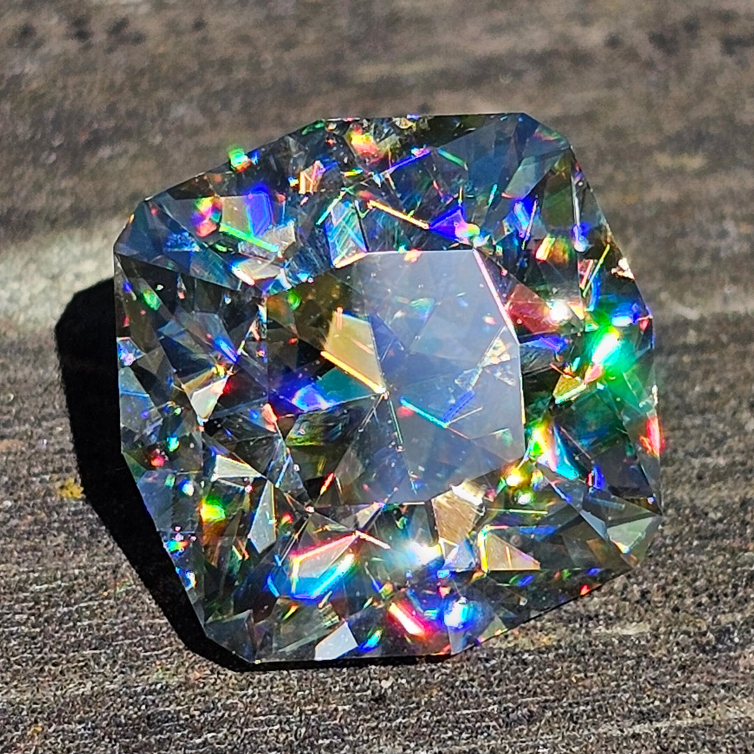 In the 1940's rutile was grown for gemstone manufacturing but is now only grown for optical applications. Every now and then a crystal will have bubbles or is grown on the wrong optical axis. Gems found here are cut from those defective crystals.